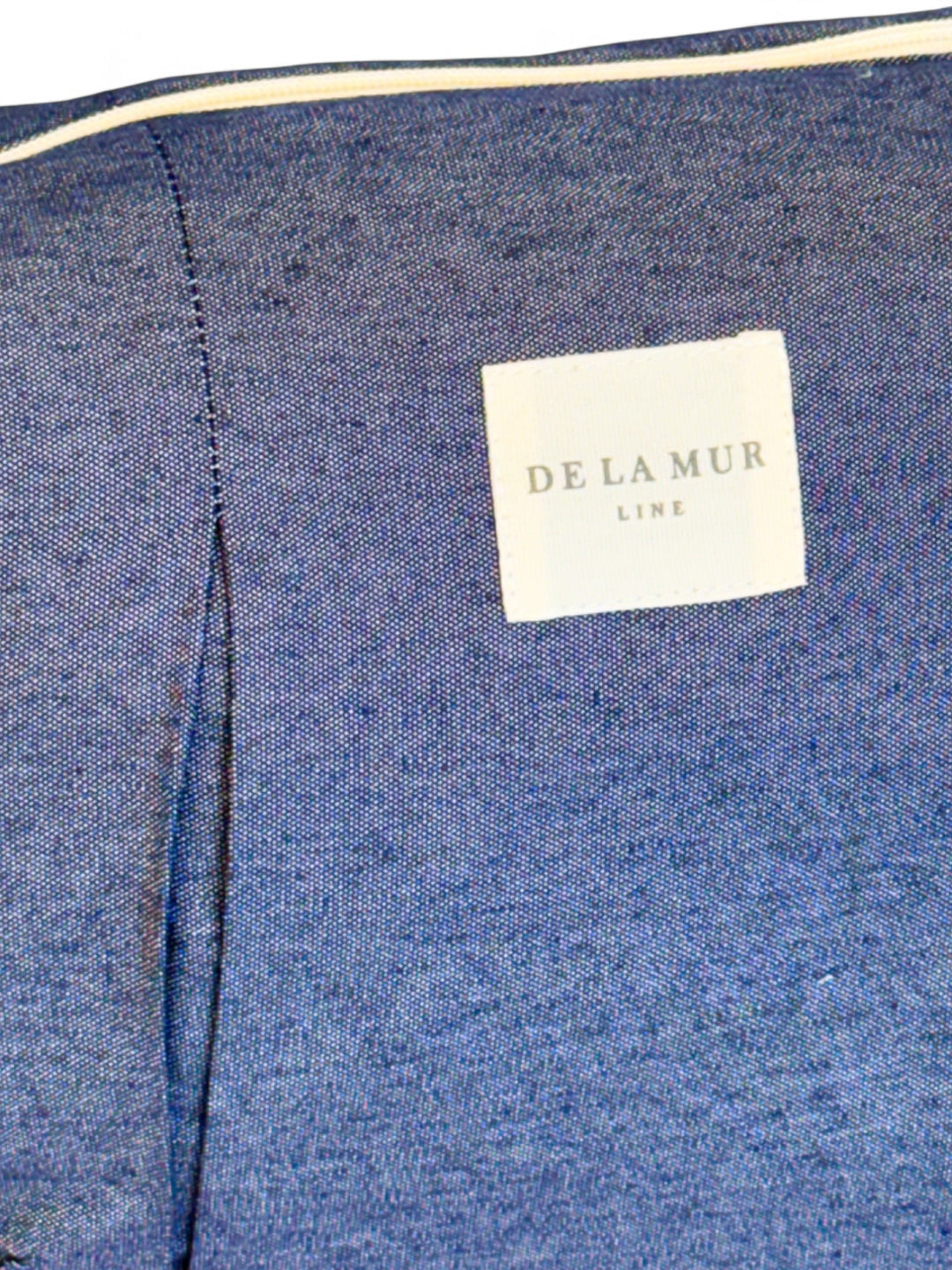 Bolso frunces tipo bandolera con asa larga ajustable de cinta de espiga de algodón de color crudo. Cierre superior con cremallera. Con tejido fino liso de color azul. Forrado de tejido grueso de color gris en la parte interior. Bolsillo interior con cremallera. Para su correcto mantenimiento se aconseja lavarlo en frío a mano y no utilizar secadora.