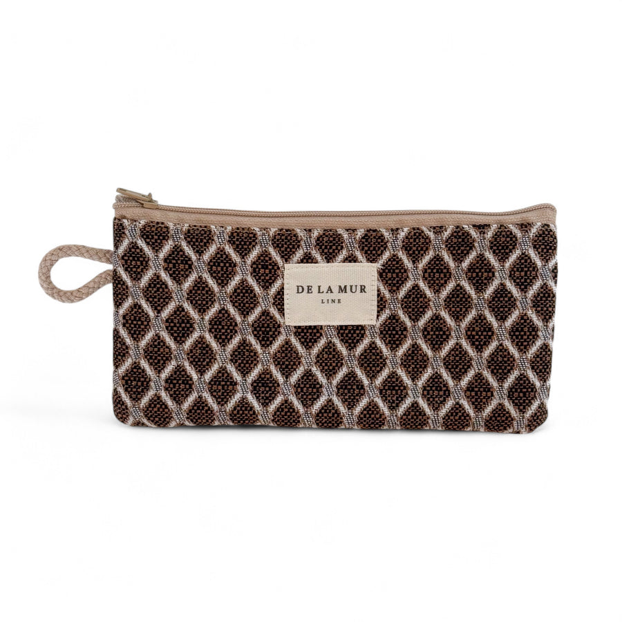 Funda de gafas con cremallera en la parte superior y pequeña asa de cordón de color beige en el lateral. Con tejido fino con textura de color rosa maquillaje. Cada articulo puede tener una variación en el estampado, dependiendo de donde se haya efectuado el corte de la pieza. Forrado de tejido grueso de color gris en la parte interior. Para su correcto mantenimiento se aconseja lavarlo en frío a mano y no utilizar secadora.