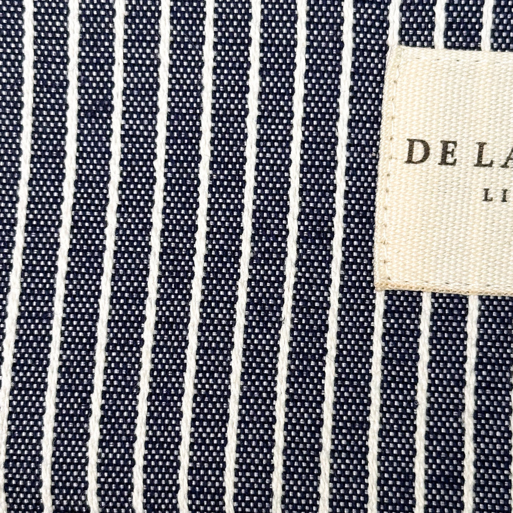 Funda de gafas con cremallera en la parte superior y pequeña asa de cordón de color crudo en el lateral. Con tejido fino con estampado a rayas de color crudo sobre fondo azul marino. Cada articulo puede tener una variación en el estampado, dependiendo de donde se haya efectuado el corte de la pieza. Forrado de tejido grueso de color gris en la parte interior. Para su correcto mantenimiento se aconseja lavarlo en frío a mano y no utilizar secadora.