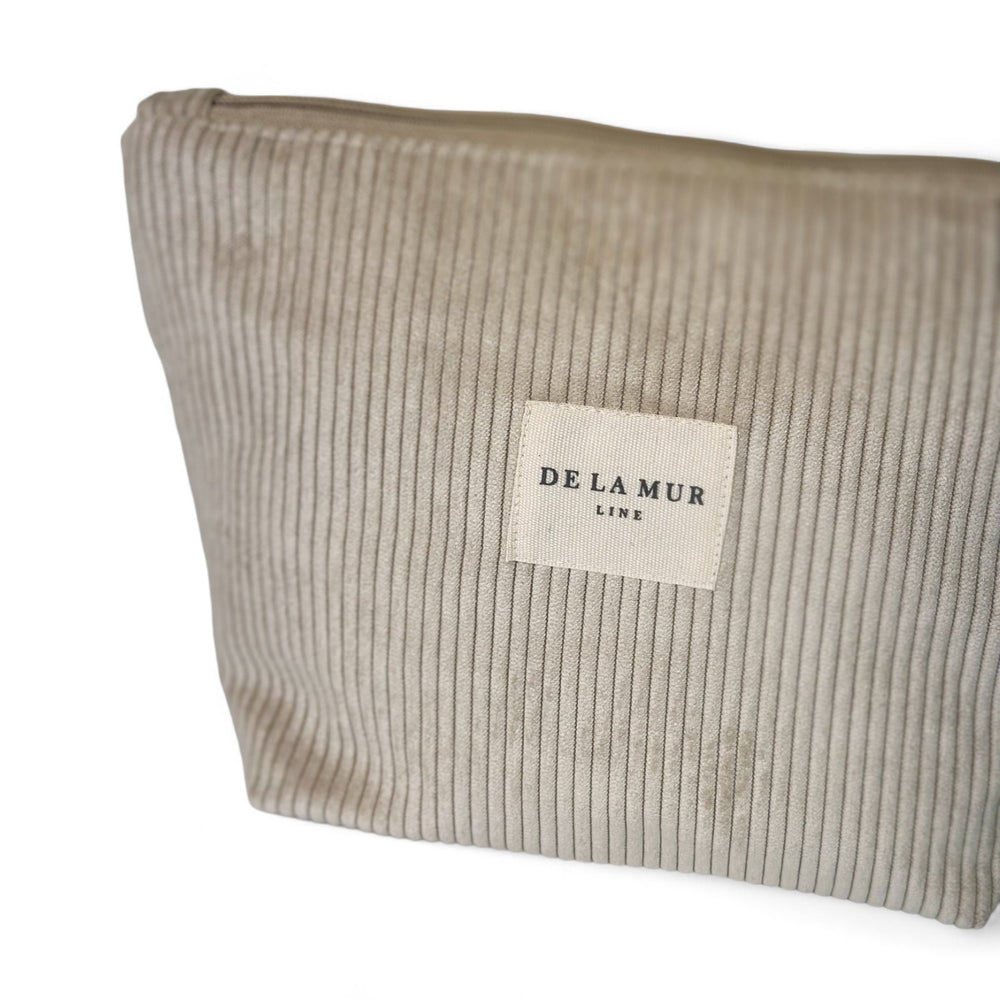 Neceser con cremallera en la parte superior y asa de cordón de color beige en el lateral. Con tejido grueso de pana beige. Forrado de tejido grueso de color gris en la parte interior. Para su correcto mantenimiento se aconseja lavarlo en frío a mano y no utilizar secadora.