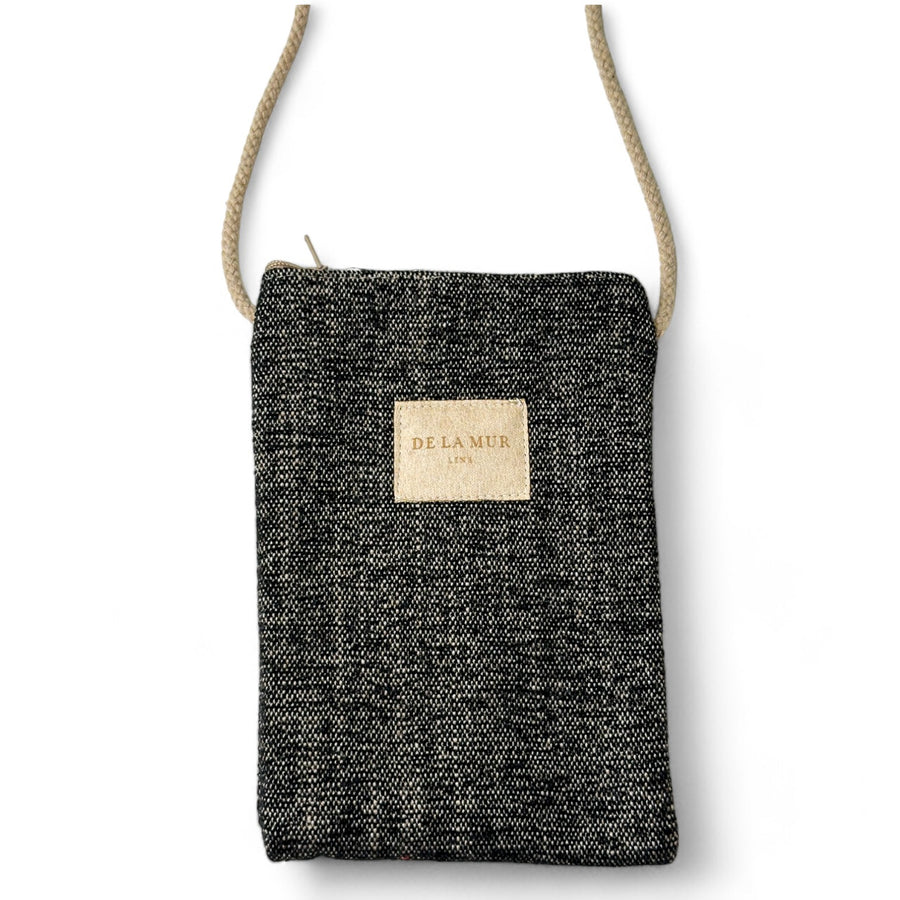 Bolsito porta móvil para llevar tipo bandolera, con cremallera en la parte superior y cordón largo de algodón de color beige. Con un tejido liso efecto desgastado de color gris oscuro. Forrado de tejido grueso de color gris en la parte interior. Etiqueta de marca de polipiel. Para su correcto mantenimiento se aconseja lavarlo en frío a mano y no utilizar secadora.