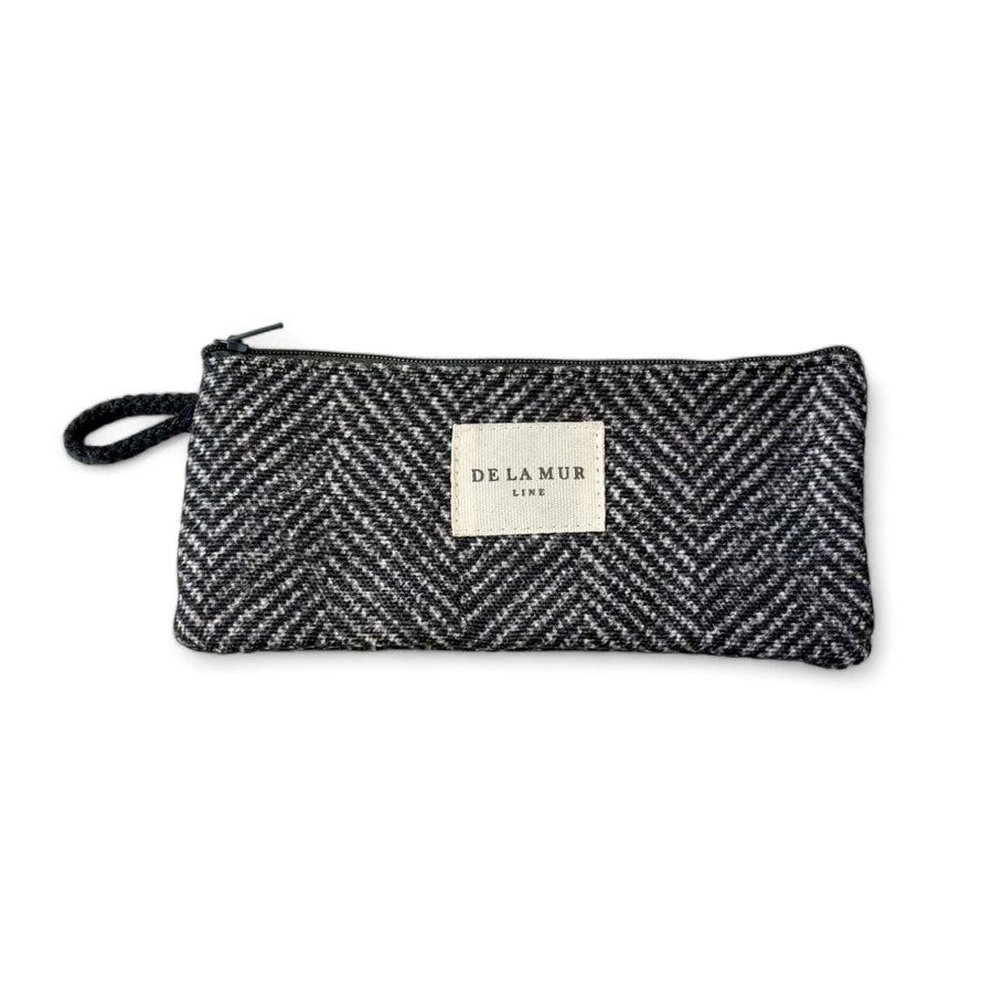 Funda de gafas con cremallera en la parte superior y pequeña asa de cordón de color gris oscuro en el lateral. Con tejido fino con estampado de espiga en tonos gris oscuro. Cada articulo puede tener una variación en el estampado, dependiendo de donde se haya efectuado el corte de la pieza. Forrado de tejido grueso de color gris en la parte interior. Para su correcto mantenimiento se aconseja lavarlo en frío a mano y no utilizar secadora.