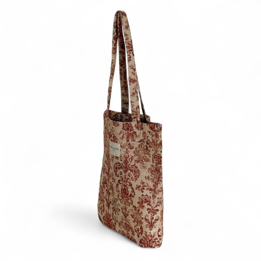 Bolsa "tote bag" con asas para llevar al hombro. Con tejido delicado de croche. Forrado de tejido grueso de color crudo en la parte interior. Para su correcto mantenimiento se aconseja lavarlo en frío y no utilizar secadora.