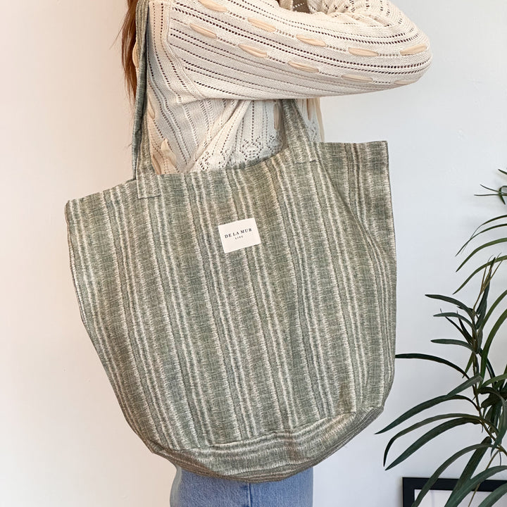 Bolsa shopper grande con asas para llevar al hombro. Con tejido estampado tie dye en tonos verdes. Para su correcto mantenimiento se aconseja lavarlo en frío a mano y no utilizar secadora.