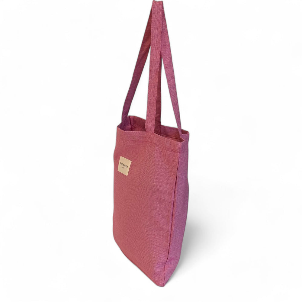 Bolsa "tote bag" con asas para llevar al hombro. Con tejido fino liso de color rosa. Para su correcto mantenimiento se aconseja lavarlo en frío y no utilizar secadora.