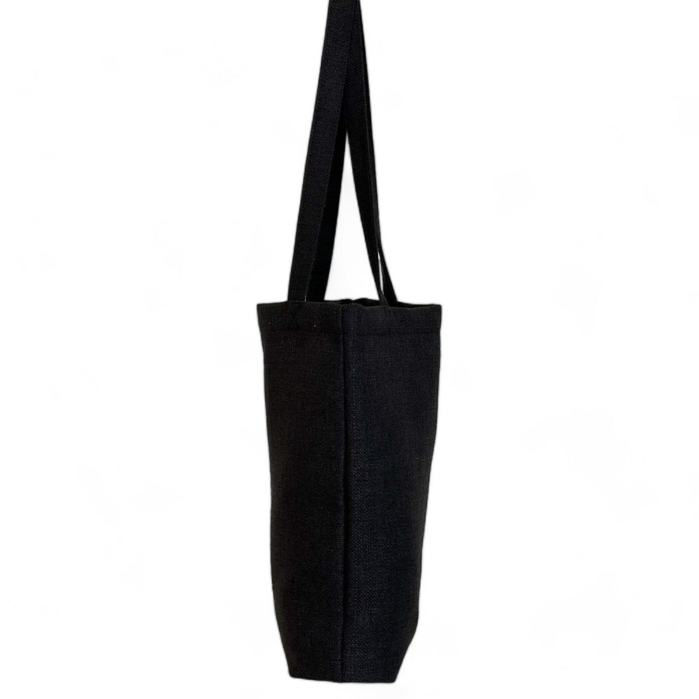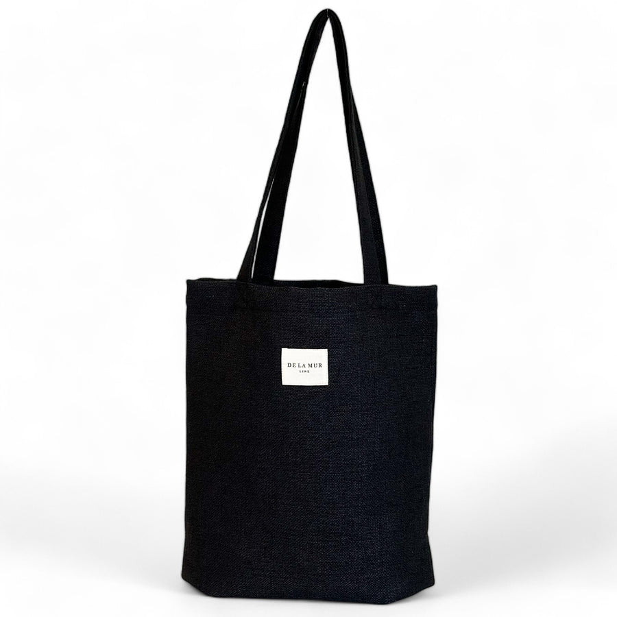 Bolsa “tote bag” con asas para llevar al hombro. Con tejido grueso liso de color negro. Para su correcto mantenimiento se aconseja lavarlo en frío y no utilizar secadora.