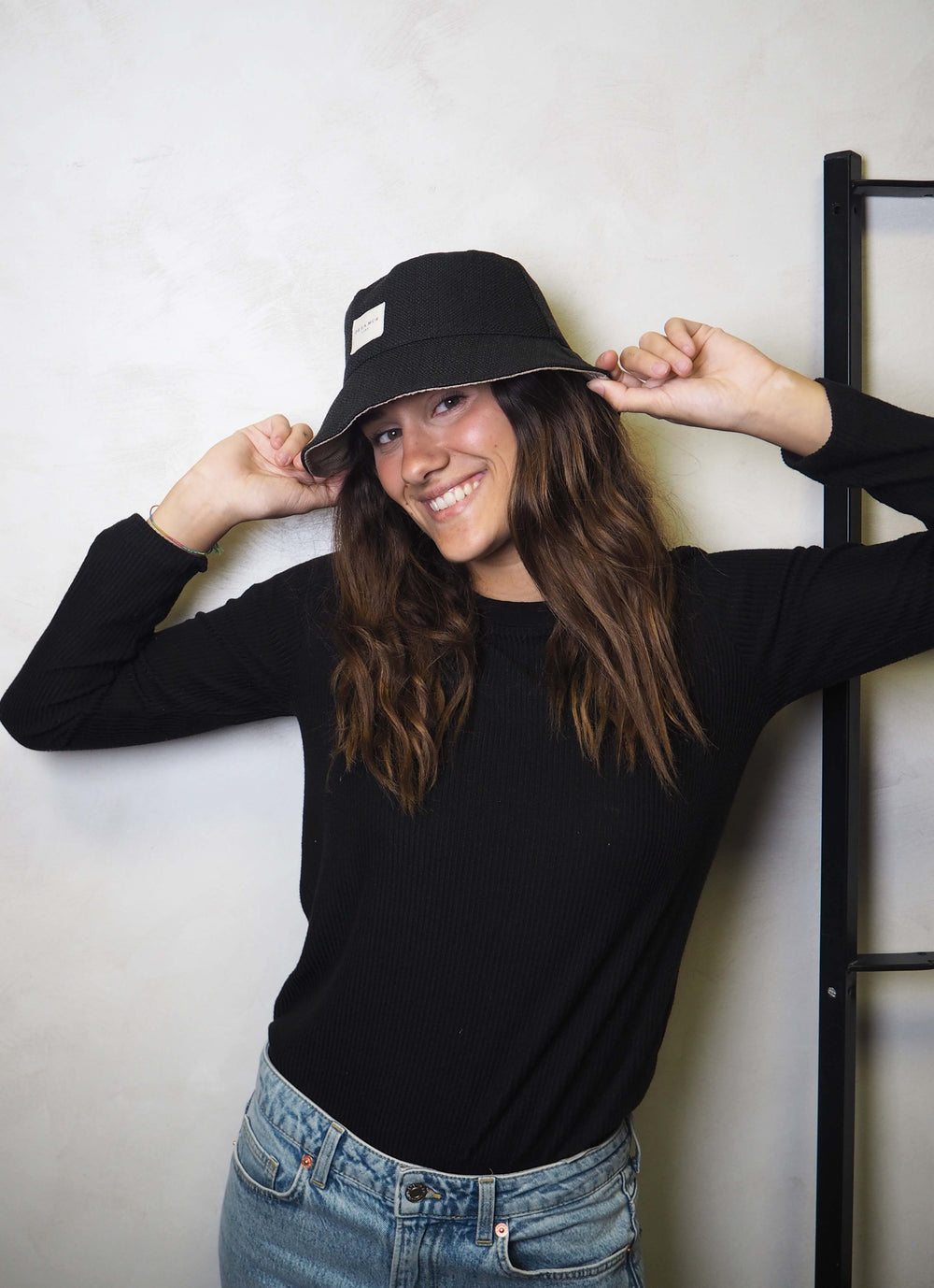 Gorro tipo “Bucket Hat” con tejido grueso de color negro y forro de tela estampada en la parte interior. Reversible. Talla única. Para su correcto mantenimiento se aconseja lavarlo en frío y no utilizar secadora.