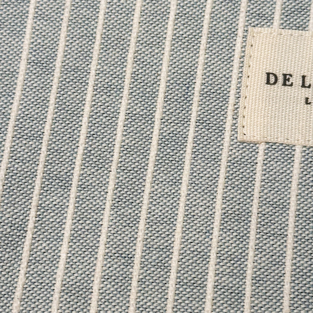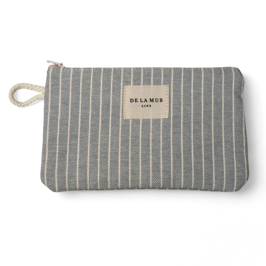 Mini neceser con cremallera en la parte superior y pequeña asa de cordón de color crudo en el lateral. Con tejido fino con estampado a rayas de color crudo sobre fondo verde agua. Cada articulo puede tener una variación en el estampado, dependiendo de donde se haya efectuado el corte de la pieza. Forrado de tejido grueso de color gris en la parte interior. Para su correcto mantenimiento se aconseja lavarlo en frío a mano y no utilizar secadora.