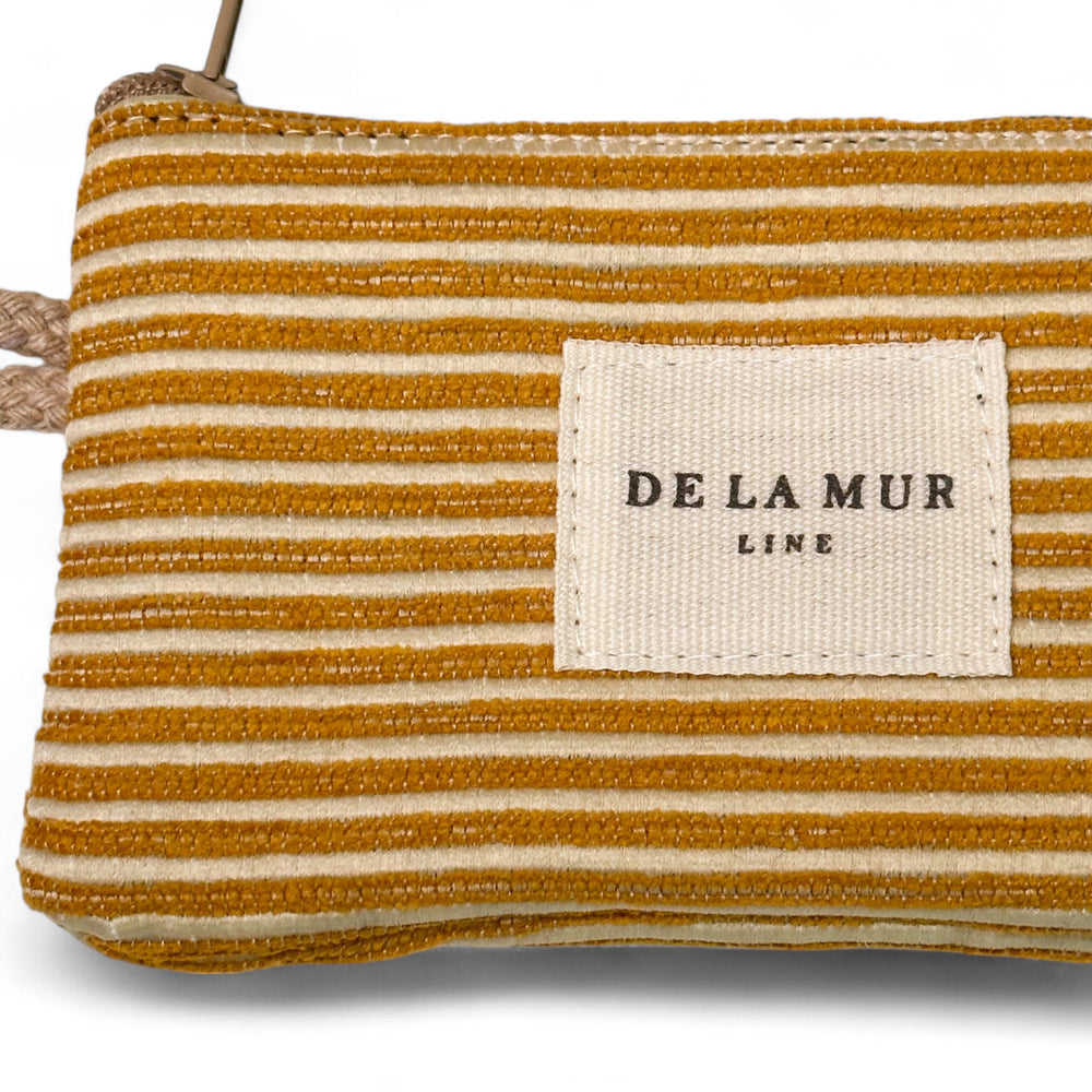 Monedero con cremallera en la parte superior y pequeña asa de cordón de color beige en el lateral. Con tejido grueso tapicero de color mostaza. Cada articulo puede tener una variación en el estampado, dependiendo de donde se haya efectuado el corte de la pieza. Forrado de tejido grueso de color gris en la parte interior. Para su correcto mantenimiento se aconseja lavarlo en frío a mano y no utilizar secadora.