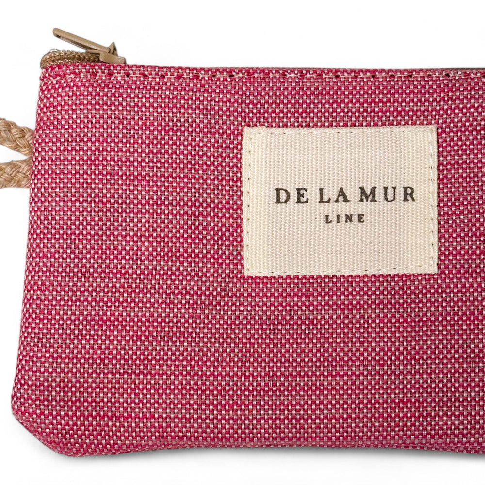 Monedero con cremallera en la parte superior y pequeña asa de cordón de color beige en el lateral. Con tejido fino de color rosa. Cada articulo puede tener una variación en el estampado, dependiendo de donde se haya efectuado el corte de la pieza. Forrado de tejido grueso de color gris en la parte interior. Para su correcto mantenimiento se aconseja lavarlo en frío a mano y no utilizar secadora.