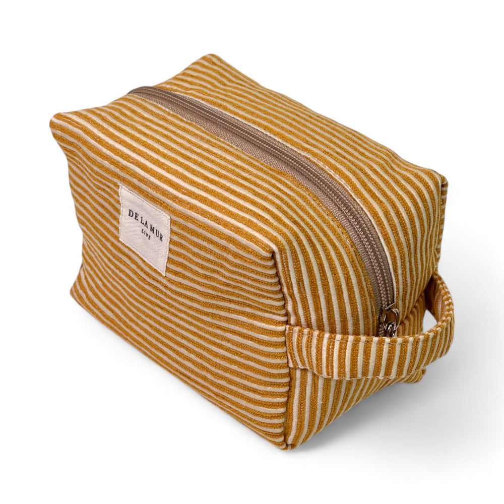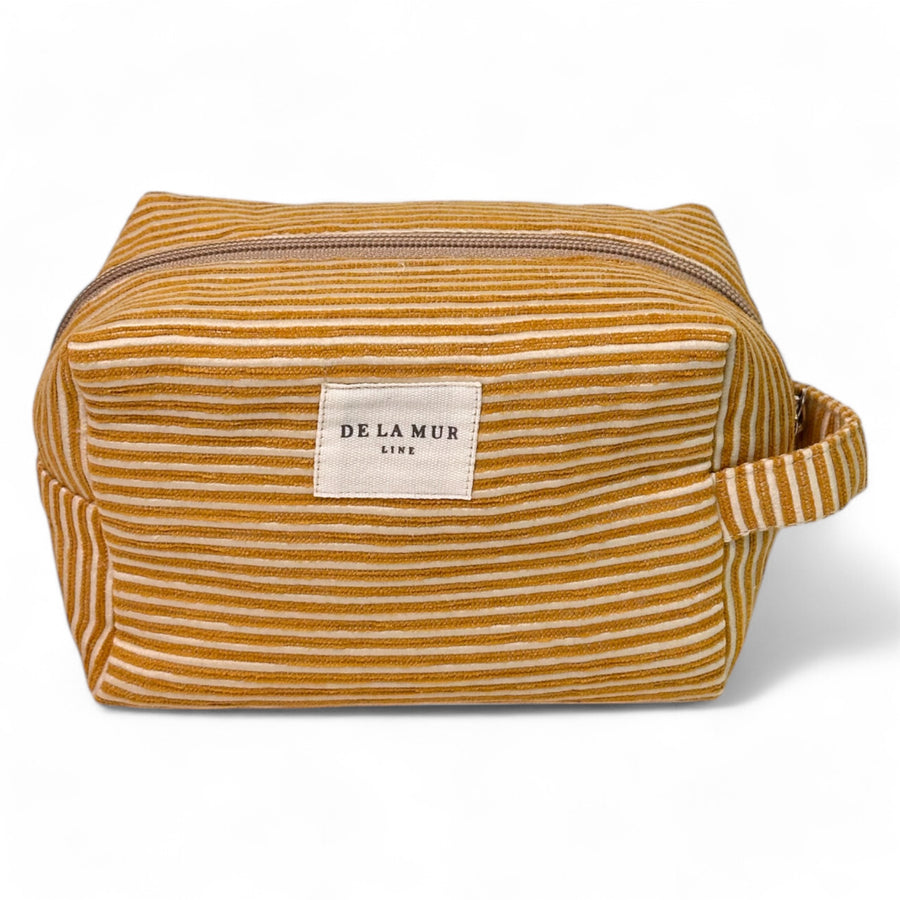Neceser mediano con cremallera en la parte superior y con asa lateral. Con tejido grueso tapicero de color mostaza. Para su correcto mantenimiento se aconseja lavarlo en frío y no utilizar secadora.