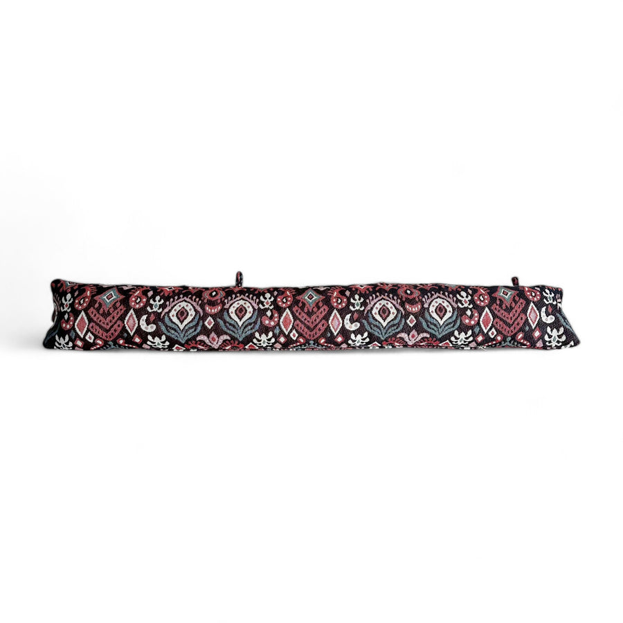 Cortavientos con relleno. Con pequeñas asas para colgar en la puerta. Con tejido grueso de jacquard con estampado geométrico en tonos rosa y granate. Para su correcto mantenimiento se aconseja lavarlo en frío y no utilizar secadora.