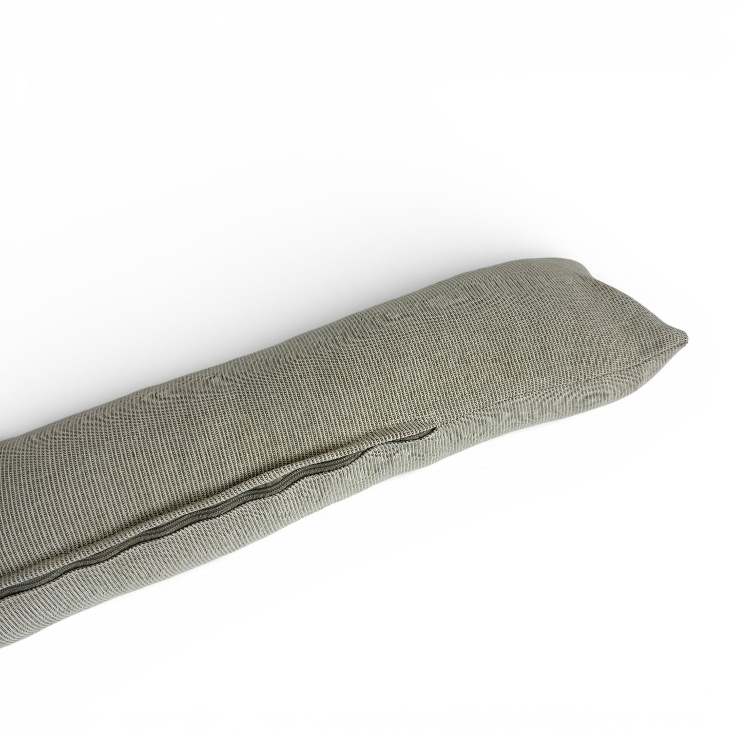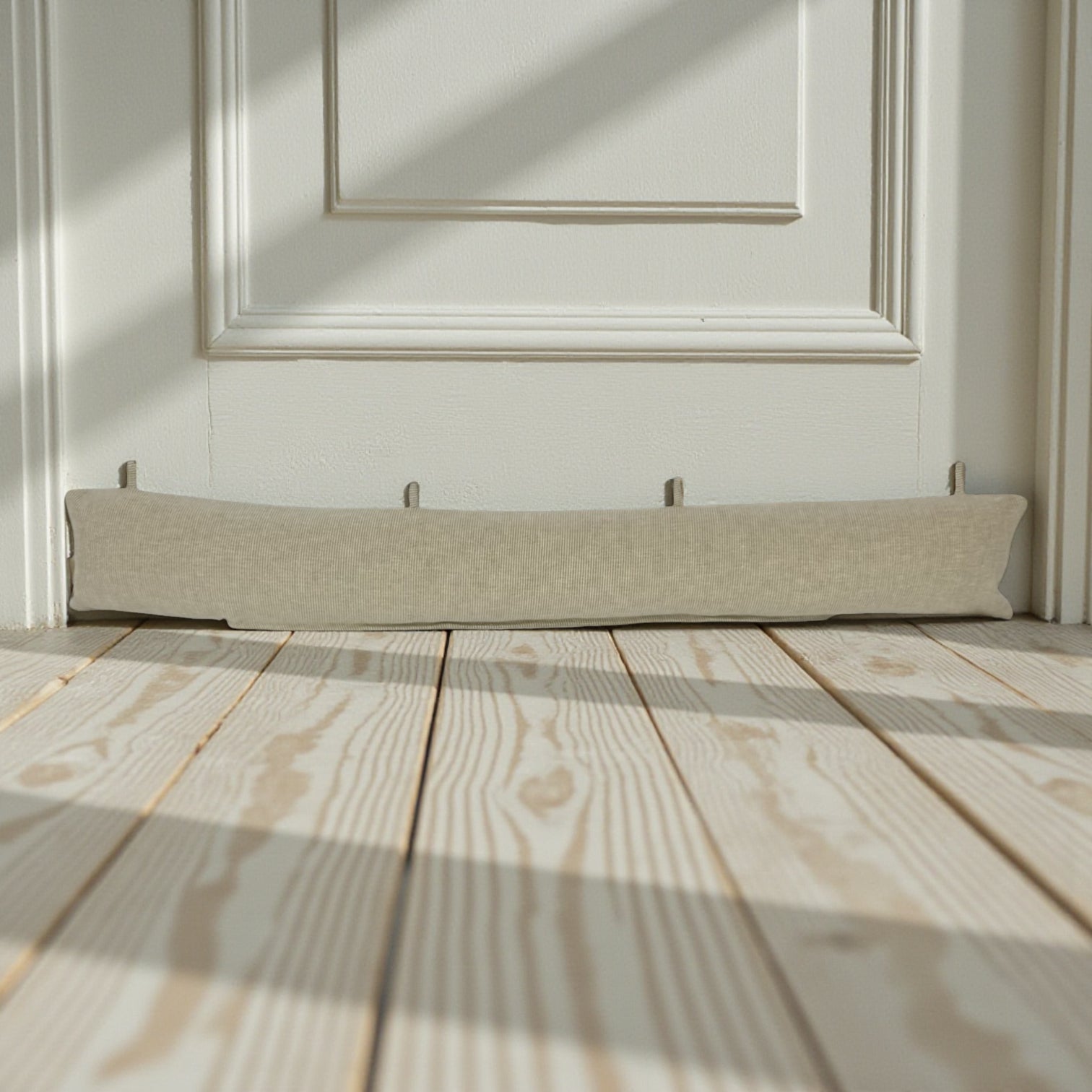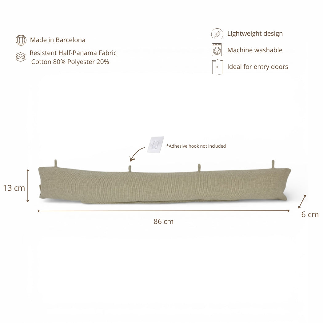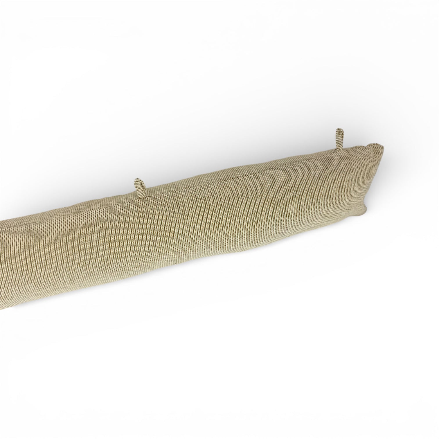 Cortavientos con relleno y pequeñas asas para poder colgarlo fácilmente en la puerta. Está confeccionado en tejido fino con relieve 80% algodón y 20% poliéster, con estampado a mini rayas mostaza, aportando textura y un estilo cálido y natural al hogar.