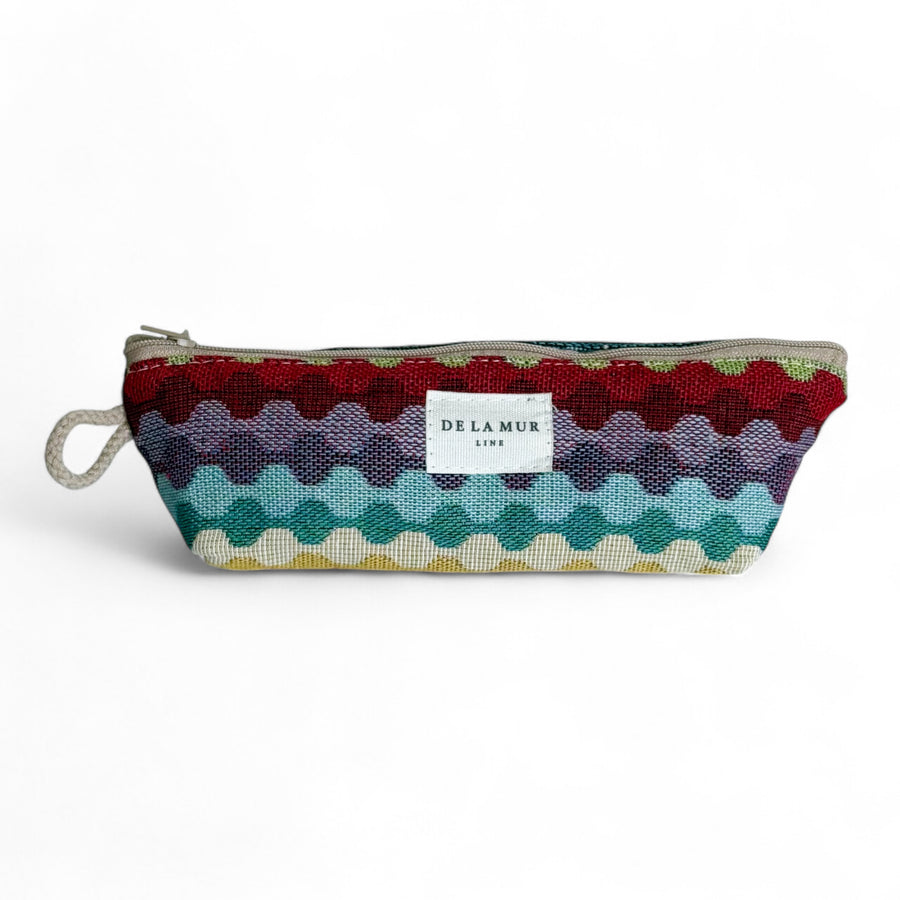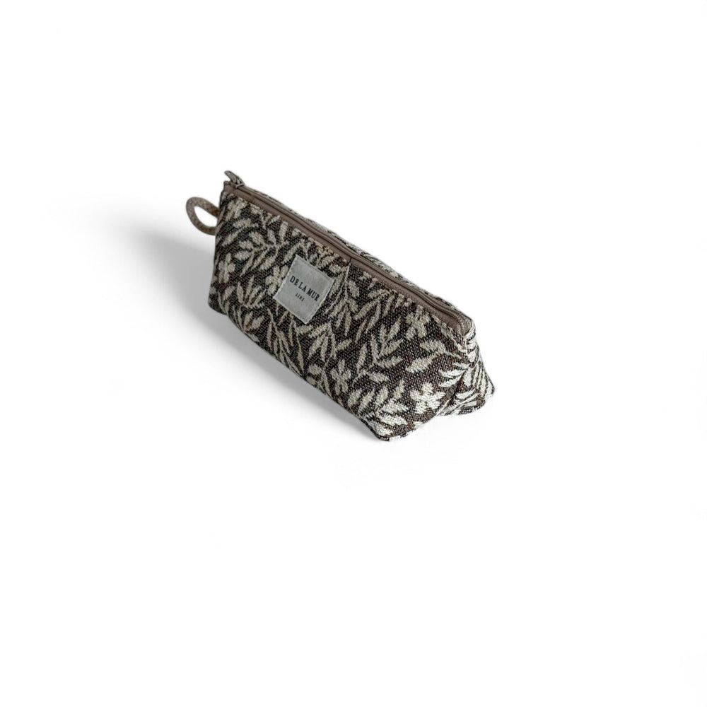 Estuche con cremallera en la parte superior. Con tejido grueso de pana de color mostaza. Cada articulo puede tener una variación en el estampado, dependiendo de donde se haya efectuado el corte de la pieza. Forrado de tejido grueso de color gris en la parte interior. Para su correcto mantenimiento se aconseja lavarlo en frío a mano y no utilizar secadora.
