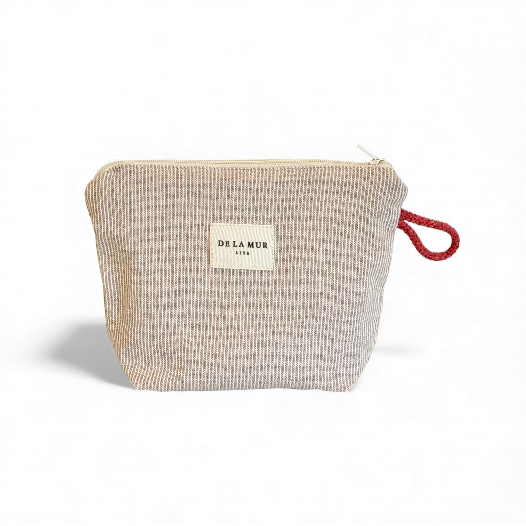 Neceser pequeño con cremallera en la parte superior y con asa lateral de cordón de color rosa. Con tejido fino con relieve 80% algodón y 20% poliéster con estampado a rayas de color rosa clarito. Cada articulo puede tener una variación en el estampado, dependiendo de donde se haya efectuado el corte de la pieza. Para su correcto mantenimiento se aconseja lavarlo en frío y no utilizar secadora.