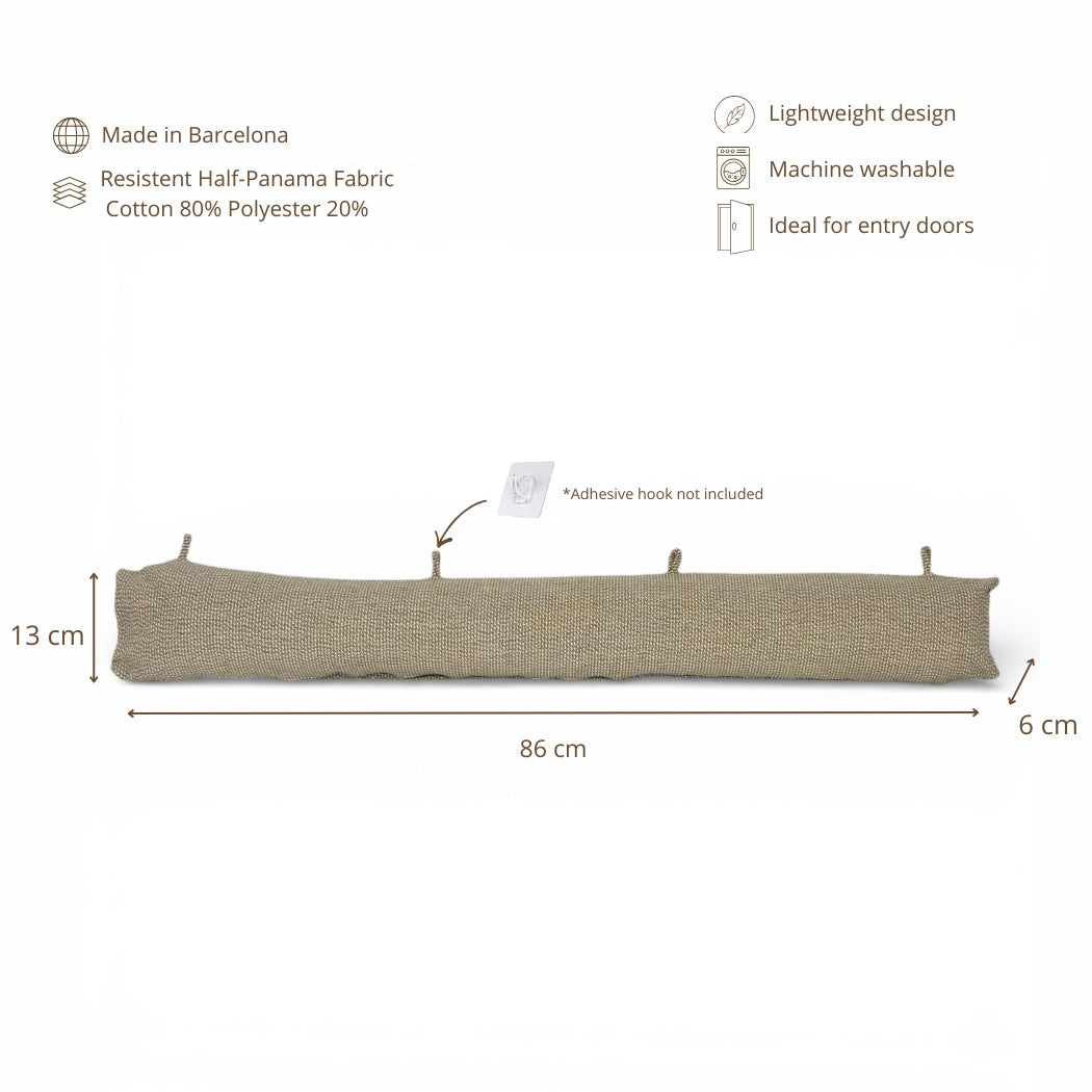 Cortavientos con relleno y pequeñas asas para poder colgarlo fácilmente en la puerta. Está confeccionado en tejido fino con relieve 80% algodón y 20% poliéster, de color beige y granate, aportando textura y un estilo cálido y natural al hogar.