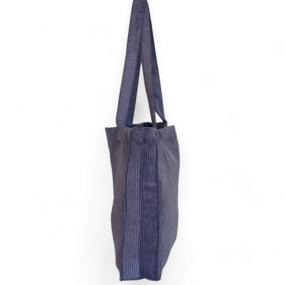 Bolsa rectangular con asas para llevar al hombro. Con un tejido grueso de pana morada. Para su correcto mantenimiento se aconseja lavarlo en frío a mano y no utilizar secadora.