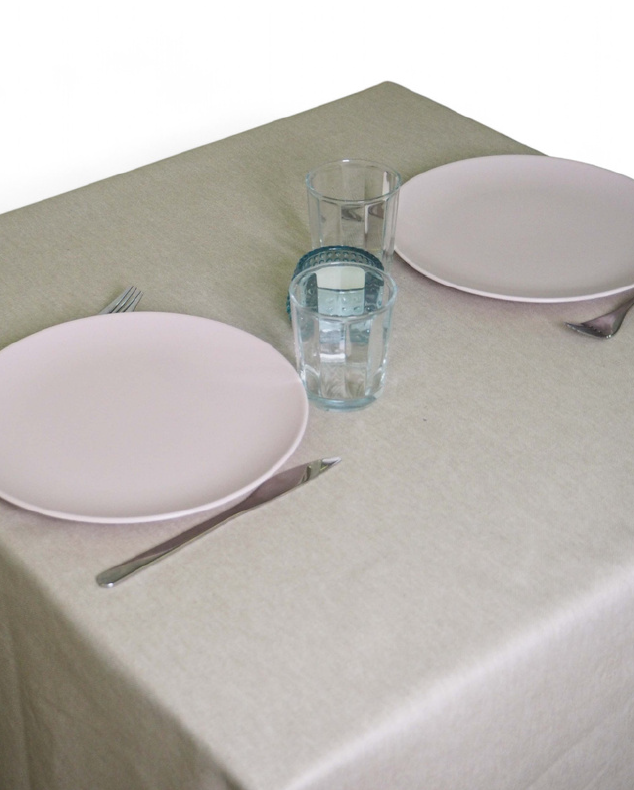 Mantel resinado para mesa. Con tejido resinado de color beige liso resistente a manchas y fácil limpieza. Para su correcto mantenimiento se aconseja lavarlo en frío y no utilizar secadora.
