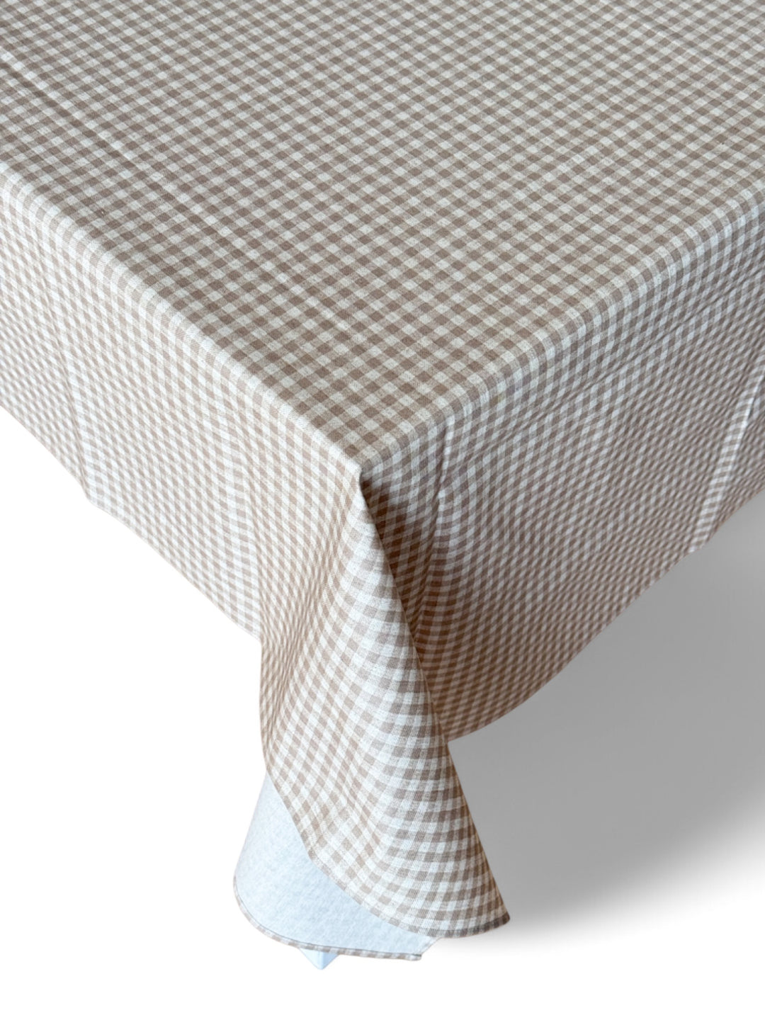 Mantel resinado para mesa. Con tejido resinado con estampado a cuadros vichy de color crudo y beige, resistente a manchas y fácil limpieza. Para su correcto mantenimiento se aconseja lavarlo en frío y no utilizar secadora.