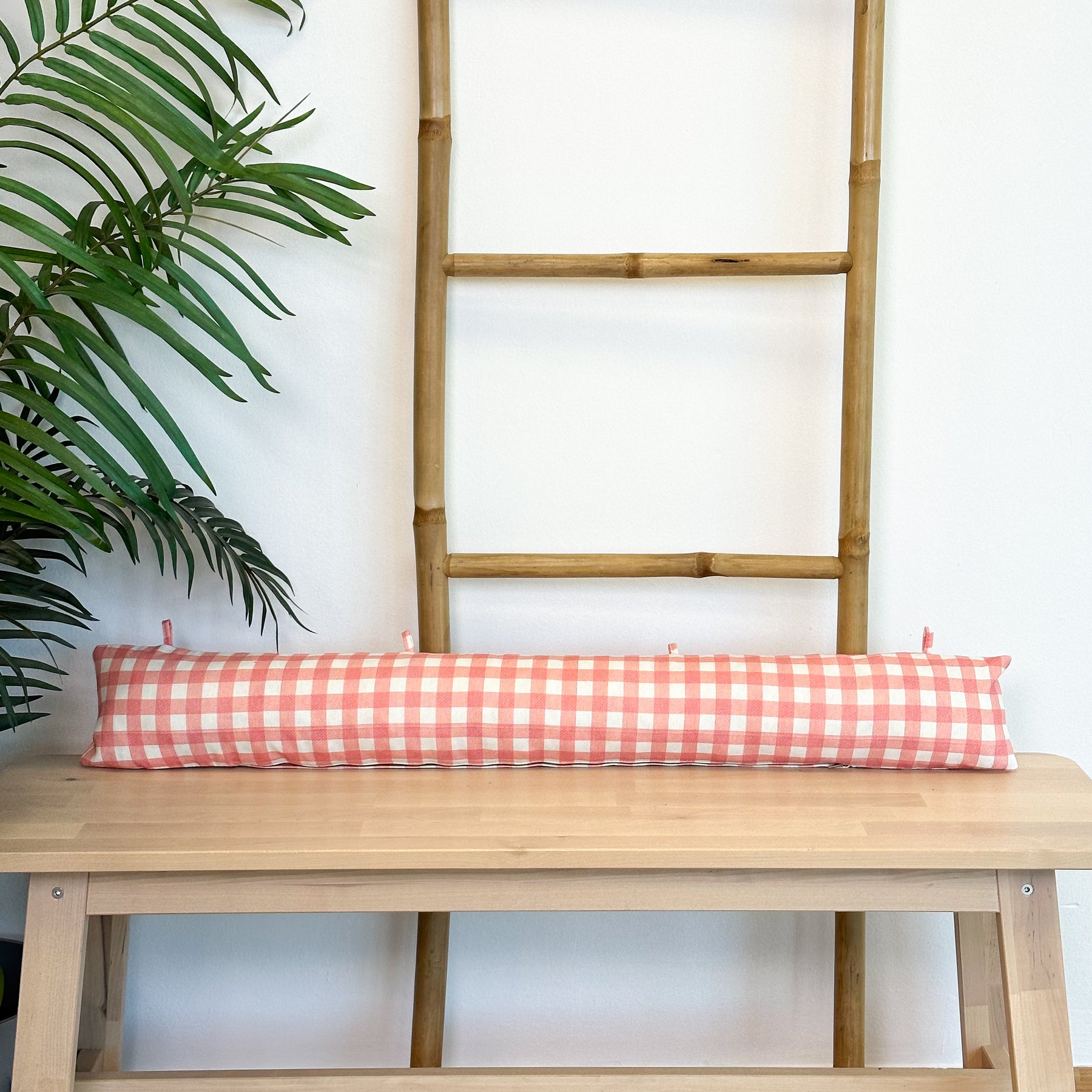Cortavientos con relleno. Con pequeñas asas para colgar en la puerta. Con tejido con estampado a cuadros vichy de color rosa. Para su correcto mantenimiento se aconseja lavarlo en frío y no utilizar secadora.
