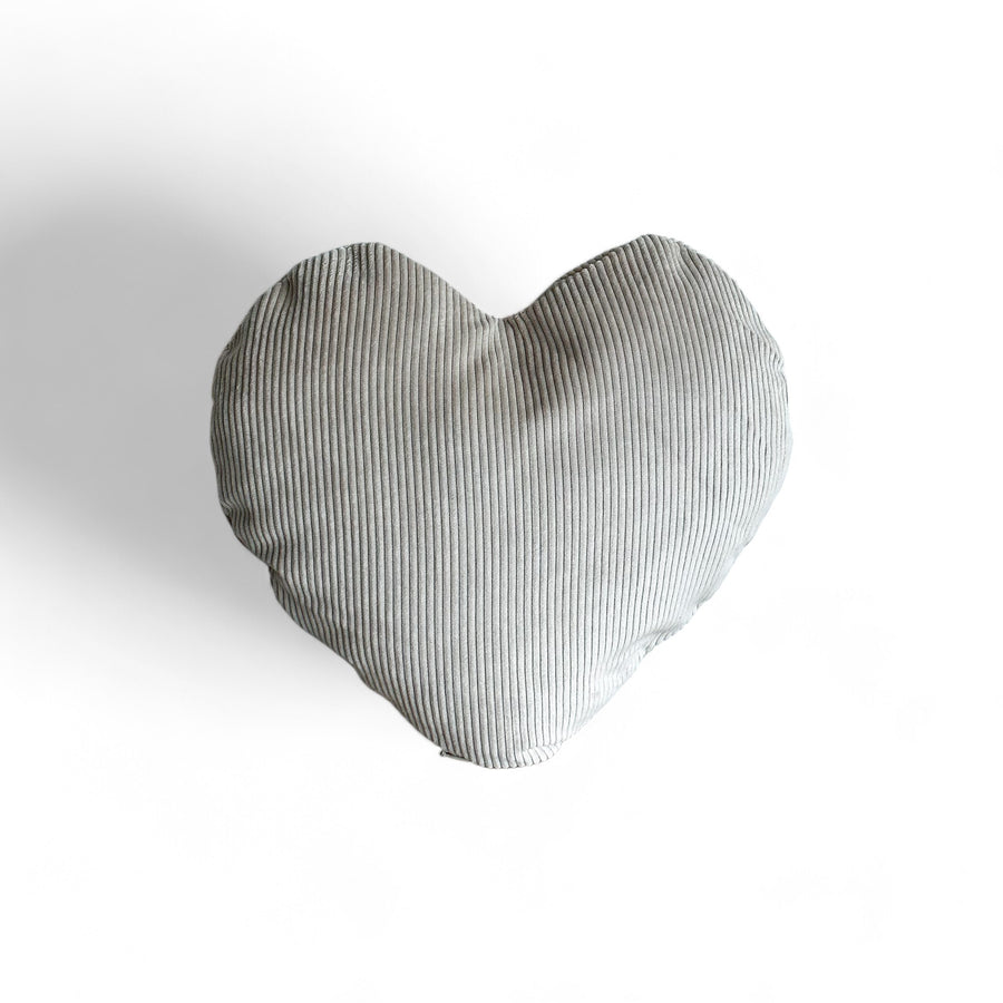 Cojín en forma de corazón con relleno. Con tejido grueso de pana beige. Para su correcto mantenimiento se aconseja lavarlo en frío y no utilizar secadora.