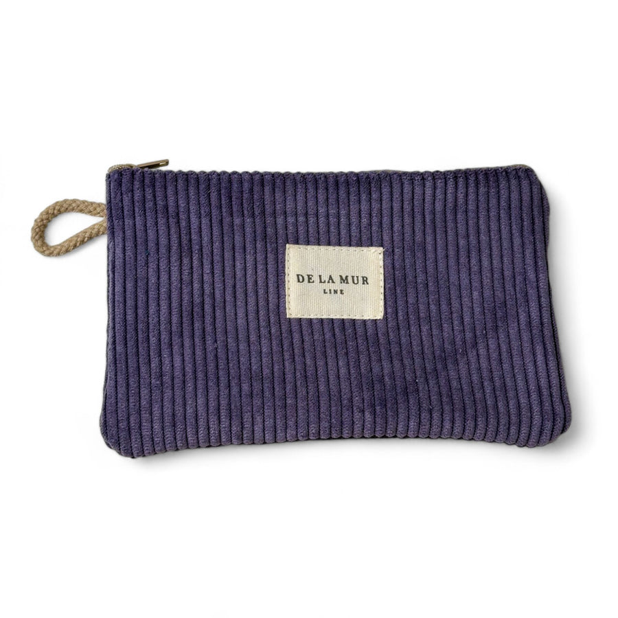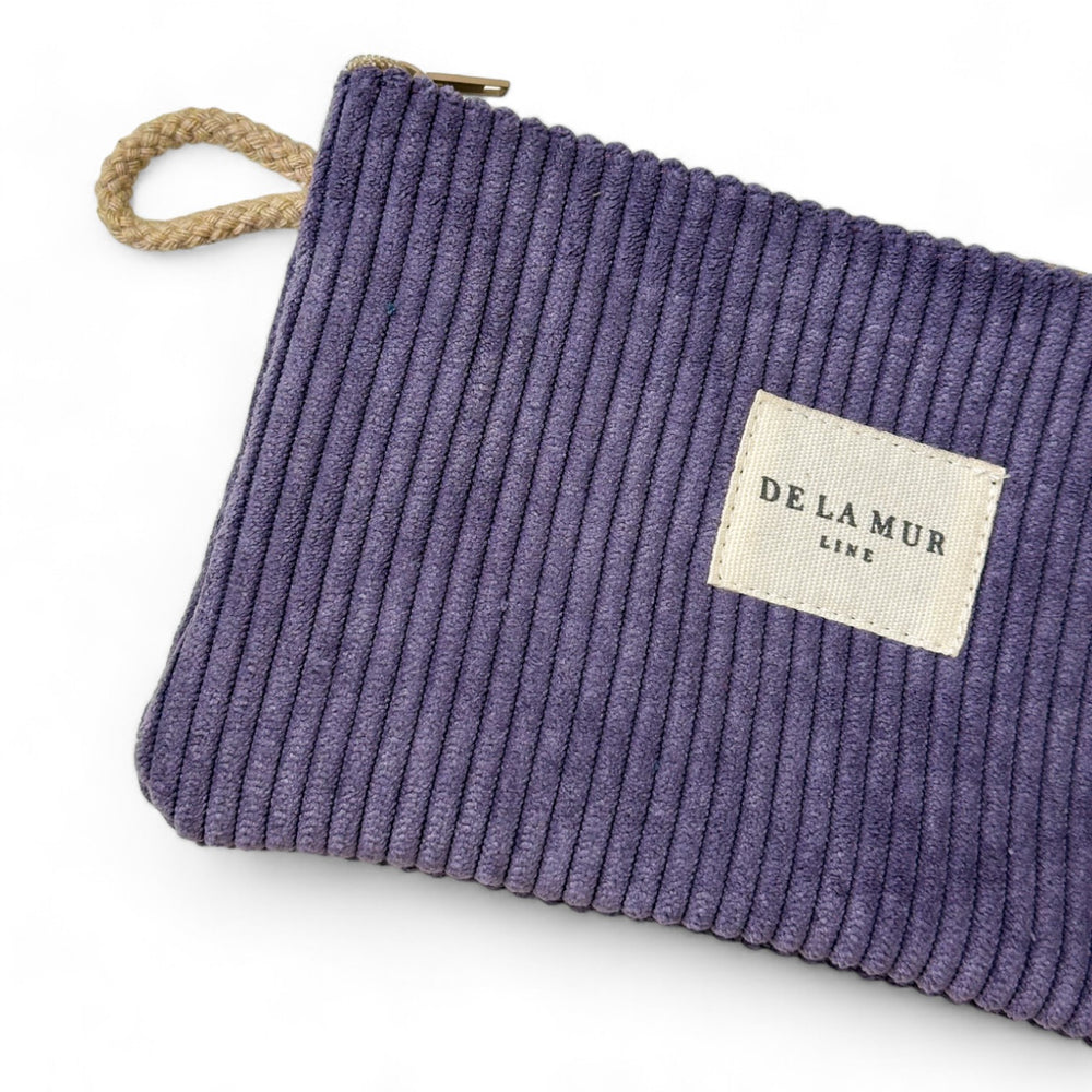 Mini neceser con cremallera en la parte superior y pequeña asa de cordón de color beige en el lateral. Con tejido grueso de pana morada. Cada articulo puede tener una variación en el estampado, dependiendo de donde se haya efectuado el corte de la pieza. Forrado de tejido grueso de color gris en la parte interior. Para su correcto mantenimiento se aconseja lavarlo en frío a mano y no utilizar secadora.