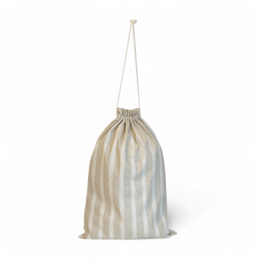Bolsa para el pan. Con tejido fino con textura con estampado a rayas de color crudo sobre fondo beige. Para su correcto mantenimiento se aconseja lavarlo en frío y no utilizar secadora.