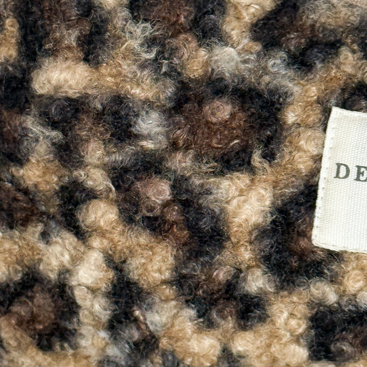 Bolso pequeño para llevar al hombro con asa de tejido. Cierre superior con cremallera. Con tejido grueso de borreguito con estampado de leopardo. Forrado de tejido grueso de color gris en la parte interior. Bolsillo interior con cremallera. Para su correcto mantenimiento se aconseja lavarlo en frío a mano y no utilizar secadora.