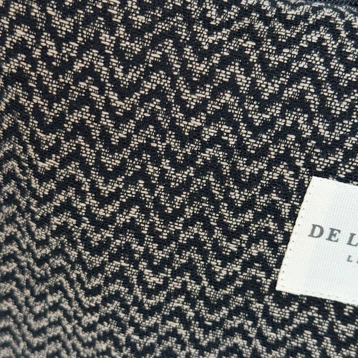 Bolso pequeño tipo bandolera con asa larga ajustable de cinta de espiga de algodón de color negro. Cierre superior con cremallera. Bolsillos laterales sin cremallera. Con tejido grueso de jacquard con estampado de espiga de color beige y negro. Forrado de tejido grueso de color gris en la parte interior. Bolsillo interior con cremallera. Para su correcto mantenimiento se aconseja lavarlo en frío a mano y no utilizar secadora.