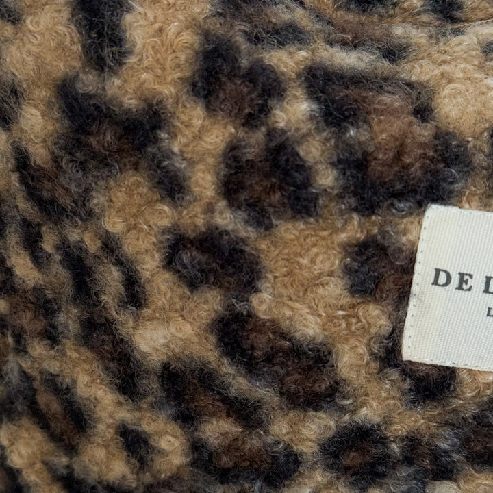 Bolso pequeño tipo bandolera con asa larga ajustable de cinta de espiga de algodón de color beige. Cierre superior con cremallera. Bolsillos laterales sin cremallera. Con tejido grueso de borreguito con estampado de leopardo. Forrado de tejido grueso de color gris en la parte interior. Bolsillo interior con cremallera. Para su correcto mantenimiento se aconseja lavarlo en frío a mano y no utilizar secadora.