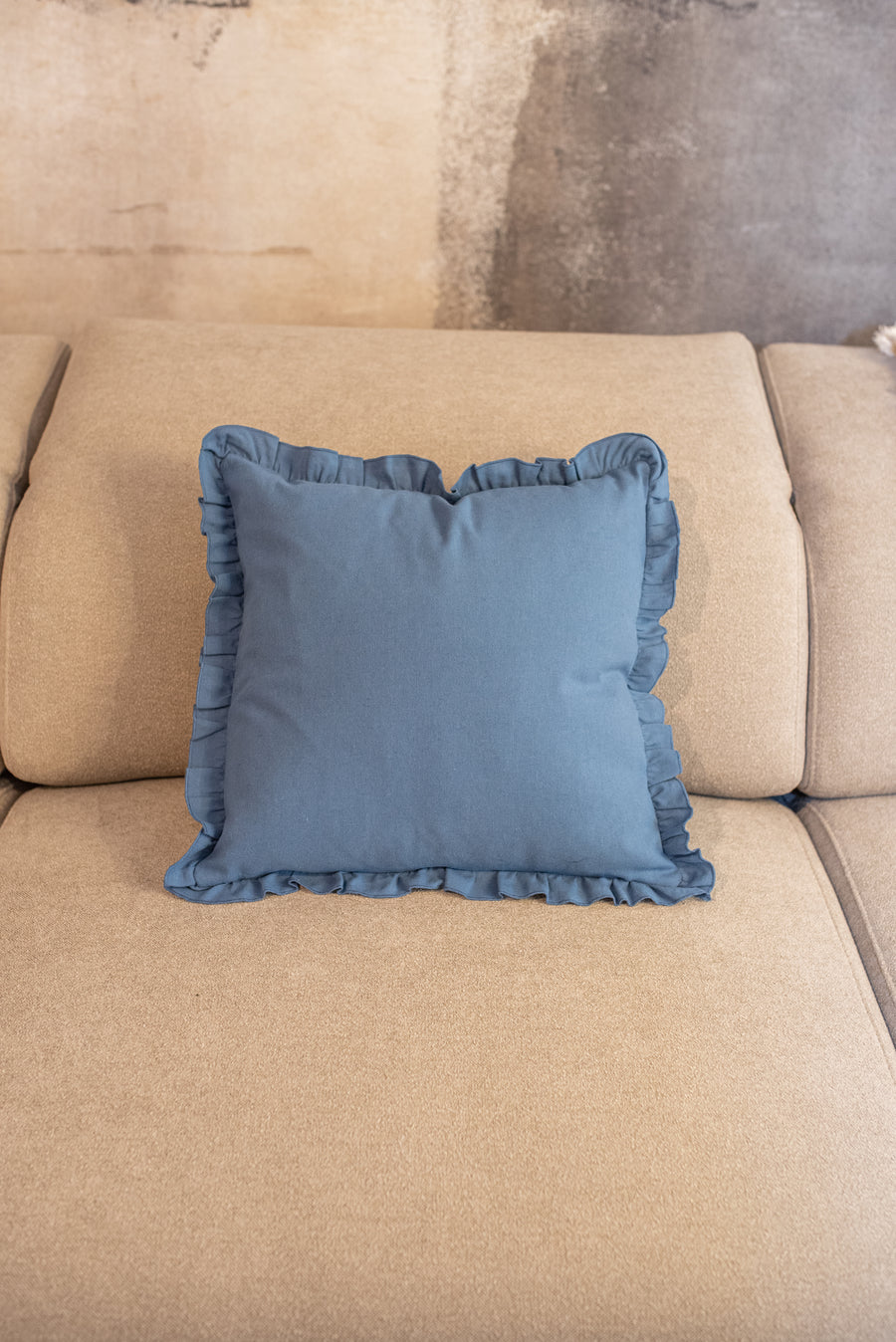 Funda de cojín sin relleno. Combinado con dos tejidos diferentes, un tejido grueso de pana gris oscuro por una cara, y un tejido liso de color gris oscuro por la otra. Para su correcto mantenimiento se aconseja lavarlo en frío y no utilizar secadora.