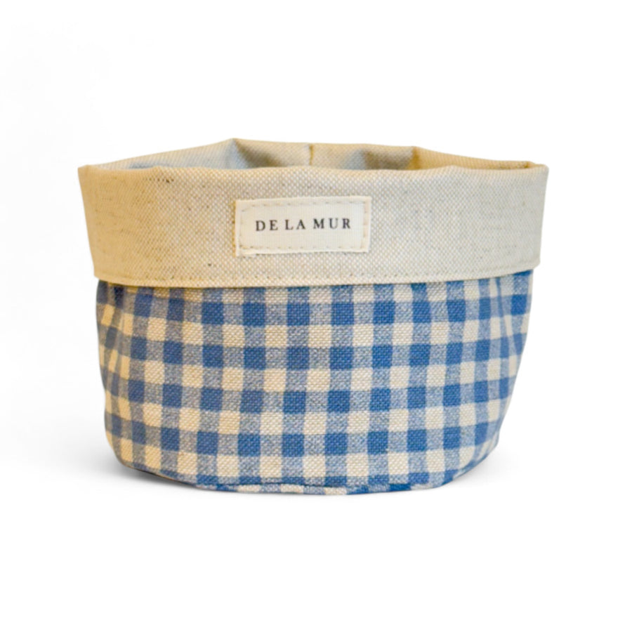 Cesta pequeña blue lineas multiusos. Con tejido con estampado a rayas en tonos azules en el exterior y tejido resinado en el interior. Para su correcto mantenimiento se aconseja lavarlo en frío y no utilizar secadora.