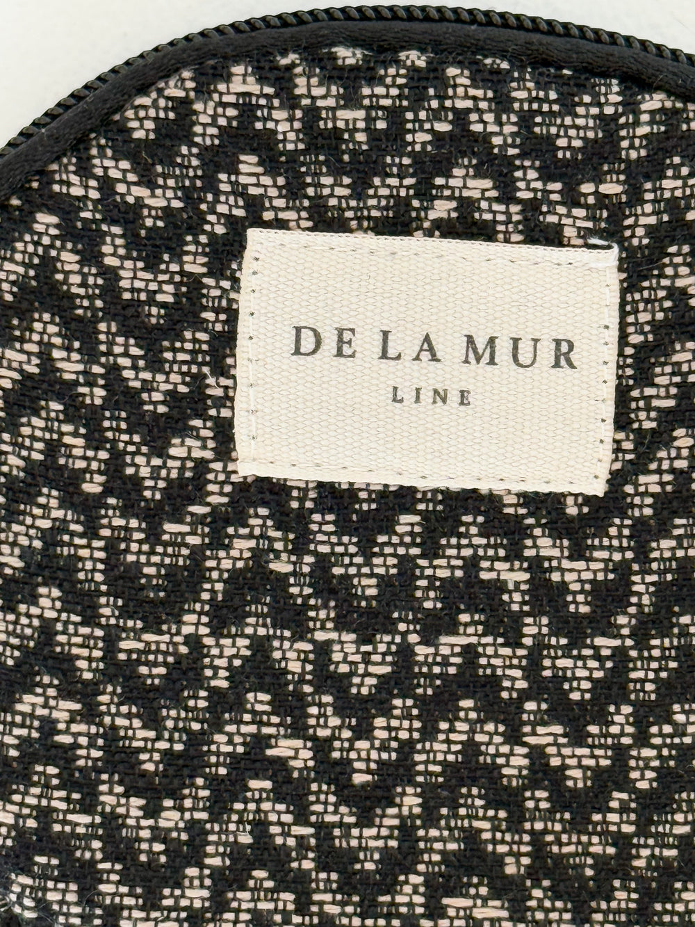 Monedero redondo con cremallera en la parte superior y pequeña asa de cordón de color negro en el lateral. Con tejido grueso de jacquard con estampado tipo zigzag en tono beige y negro. Cada articulo puede tener una variación en el estampado, dependiendo de donde se haya efectuado el corte de la pieza. Forrado de tejido grueso de color gris en la parte interior. Para su correcto mantenimiento se aconseja lavarlo en frío a mano y no utilizar secadora.