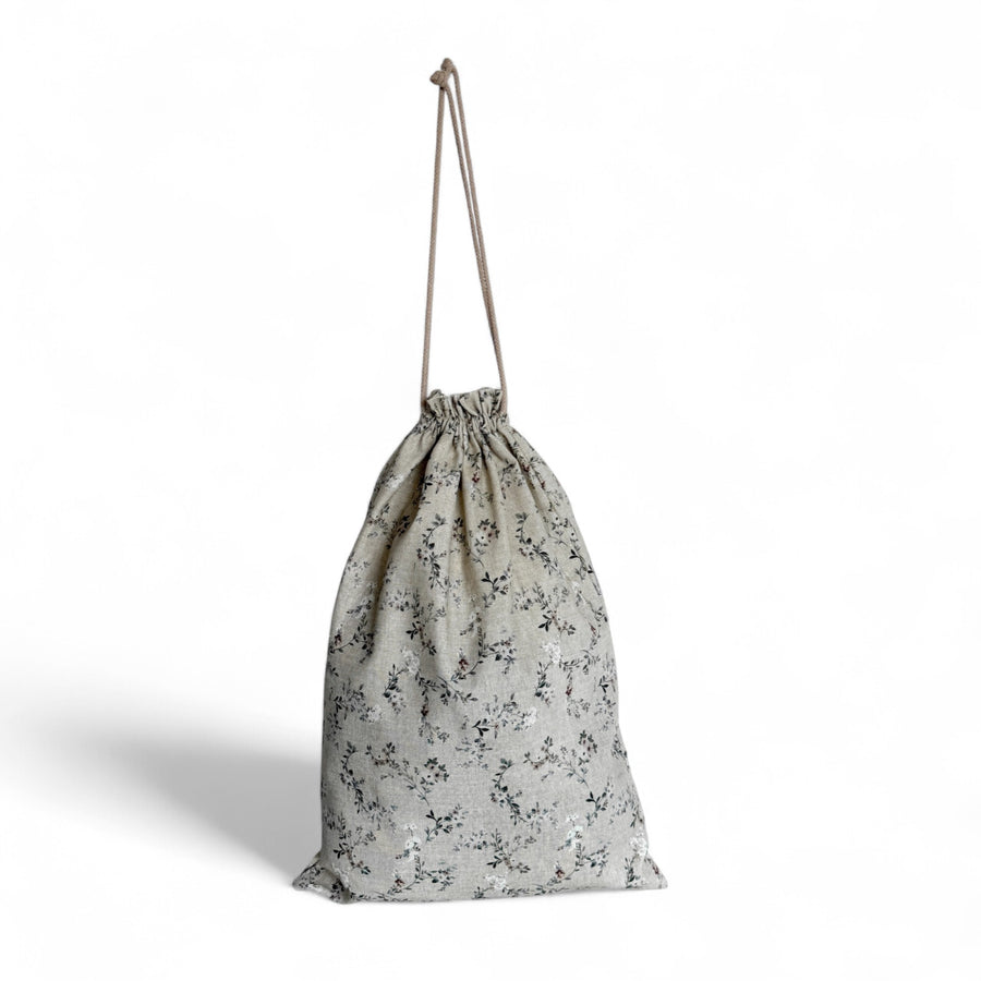 Bolsa para el pan. Con tejido de half-panama con estampado floral en tonos verdes y lilas. Para su correcto mantenimiento se aconseja lavarlo en frío y no utilizar secadora.