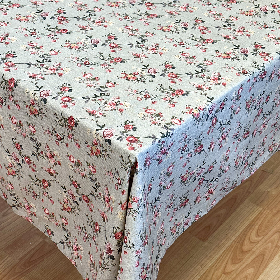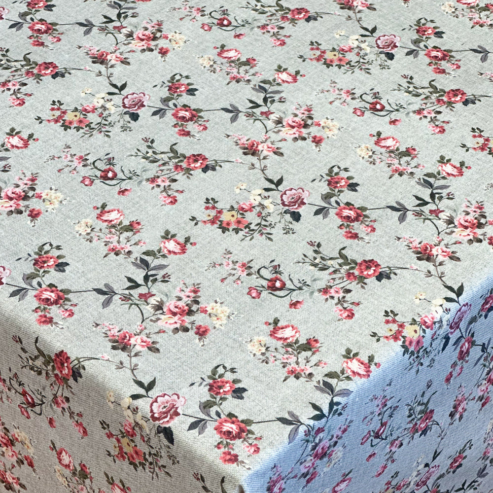 Mantel para mesa. Con tejido con estampado floral en tonos rojizos. Para su correcto mantenimiento se aconseja lavarlo en frío y no utilizar secadora.