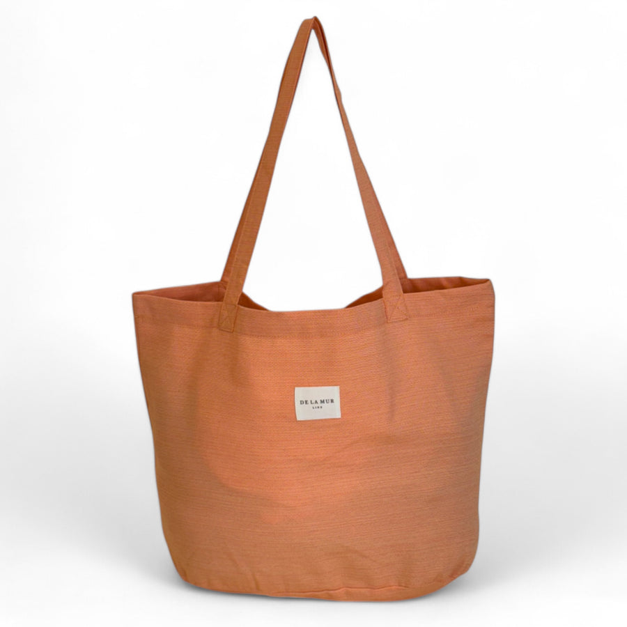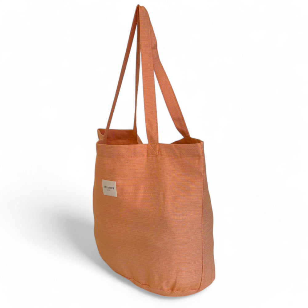 Bolsa shopper grande con asas para llevar al hombro. Con tejido fino de color naranja. Para su correcto mantenimiento se aconseja lavarlo en frío a mano y no utilizar la secadora.