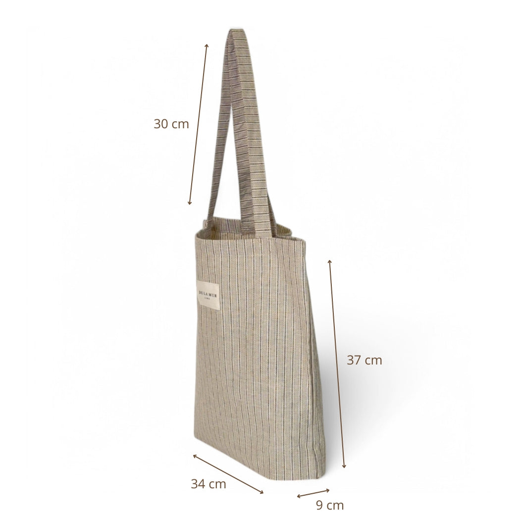 Bolsa “tote bag” con asas para llevar al hombro. Con tejido fino con estampado a rayas. Para su correcto mantenimiento se aconseja lavarlo en frío y no utilizar secadora.