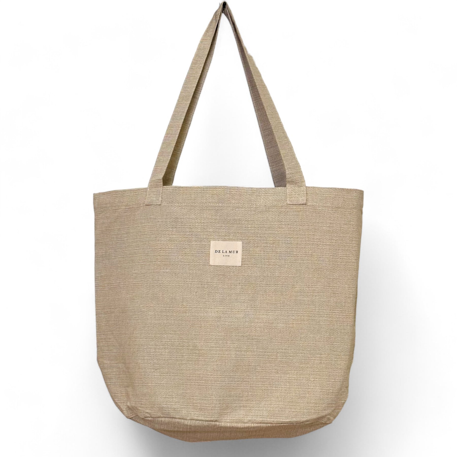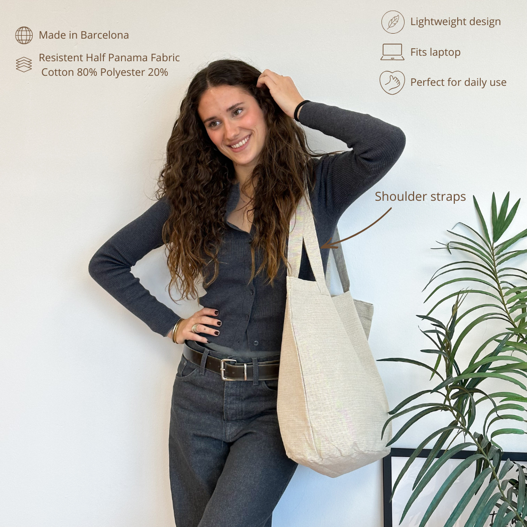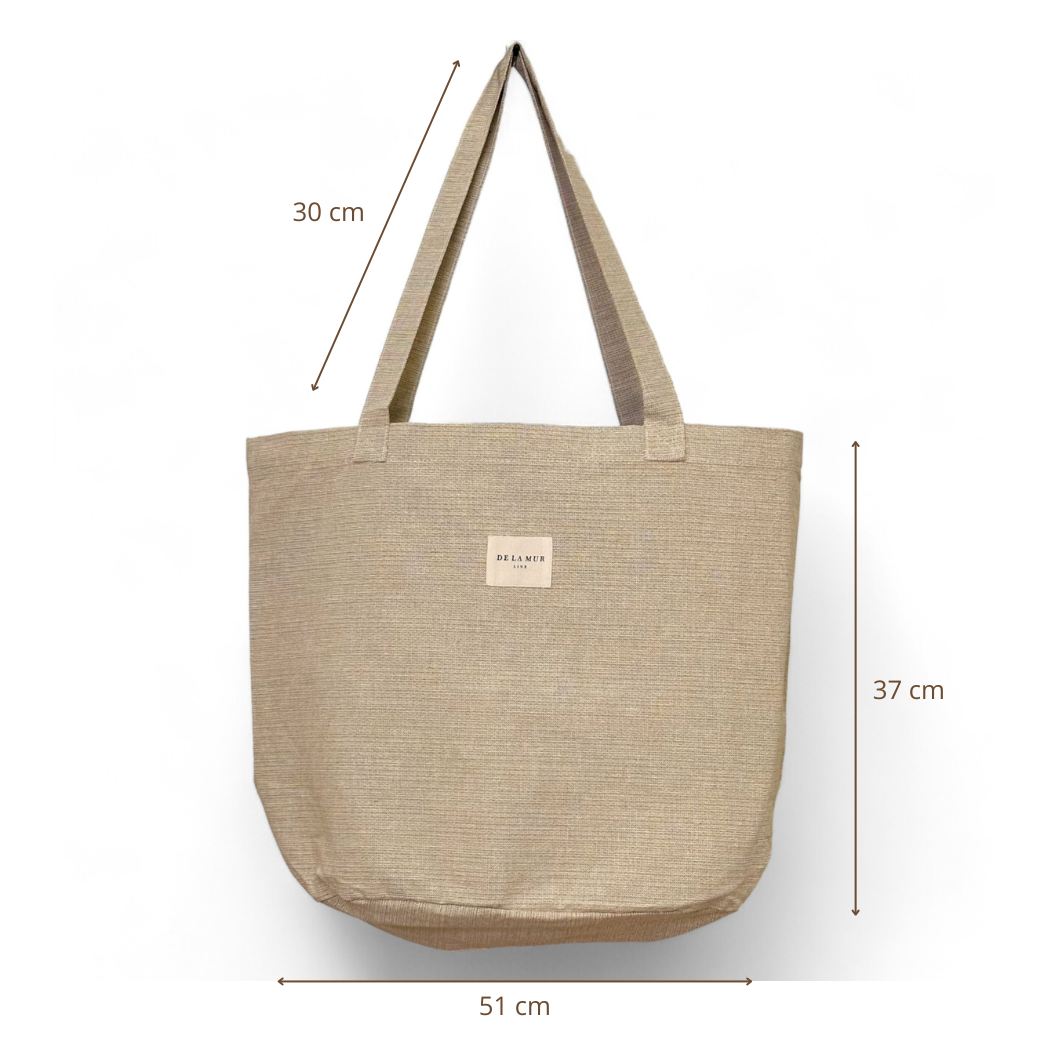 Bolsa shopper grande con asas para llevar al hombro. Con un tejido liso beige. Para su correcto mantenimiento se aconseja lavarlo en frío a mano y no utilizar secadora.