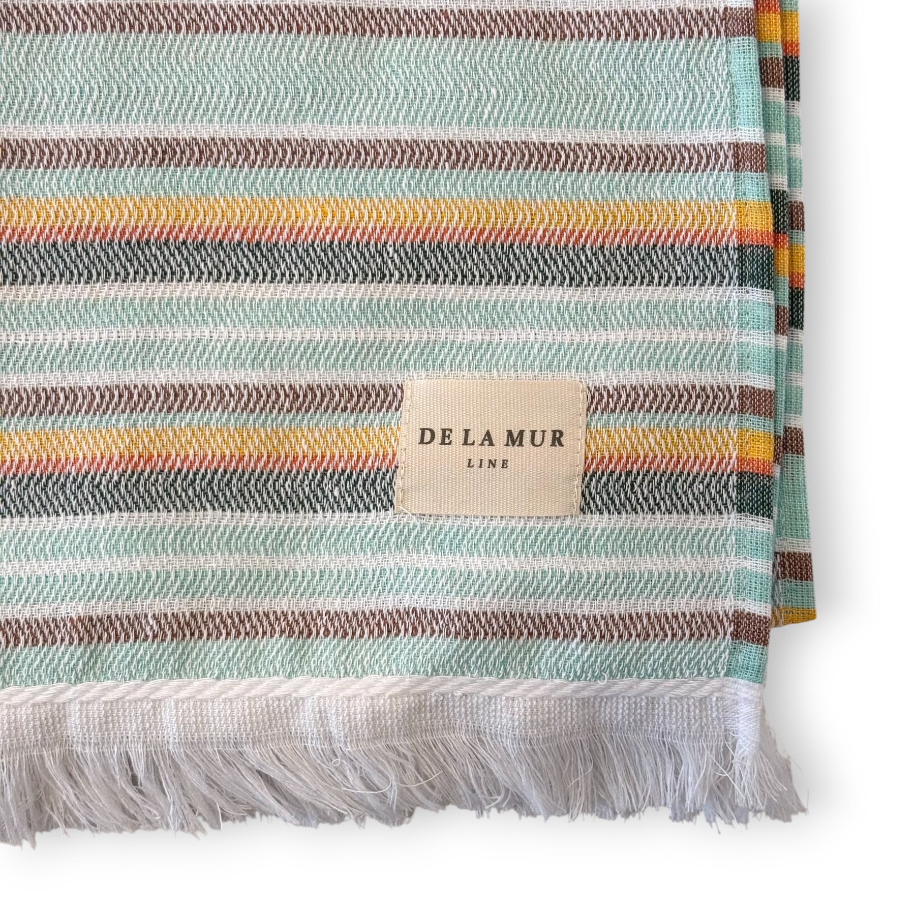 Toalla multiusos de tejido ligero 50% algodón reciclado y 50% poliéster con flecos en los laterales. Con estampado a rayas multicolor. Medida única. Para su correcto mantenimiento se aconseja lavarlo en frío y no utilizar secadora.