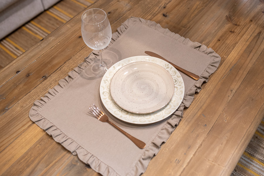 Chemin de table terminé en forme de pic avec un pompon beige aux extrémités. Avec tissu imprimé vichy dans un ton moutarde. Pour un bon entretien, il est recommandé de le laver à froid et de ne pas utiliser de sèche-linge.
