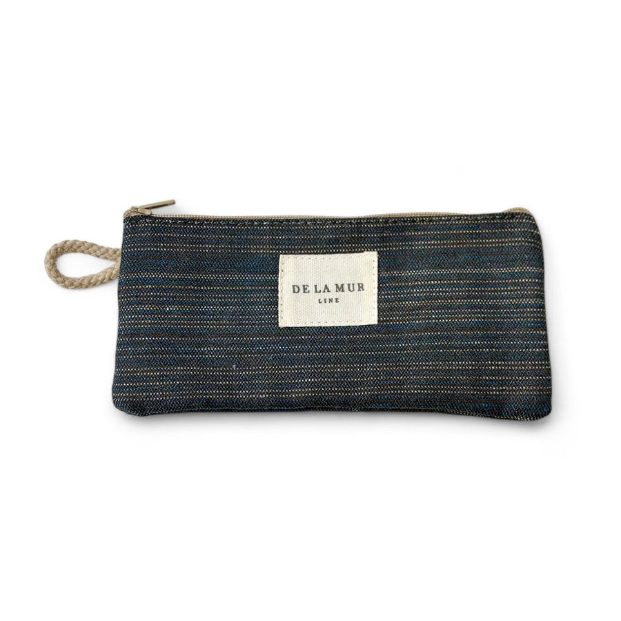 Funda de gafas con cremallera en la parte superior y pequeña asa de cordón de color beige en el lateral. Con tejido grueso a rayas en tono azul oscuro y marrón. Cada articulo puede tener una variación en el estampado, dependiendo de donde se haya efectuado el corte de la pieza. Forrado de tejido grueso de color gris en la parte interior. Para su correcto mantenimiento se aconseja lavarlo en frío a mano y no utilizar secadora.