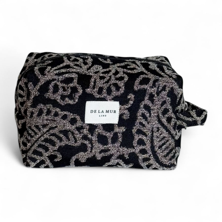 Neceser mediano con cremallera en la parte superior y con asa lateral. Con tejido grueso de jacquard con estampado floral en tonos negro y beige. Para su correcto mantenimiento se aconseja lavarlo en frío y no utilizar secadora.