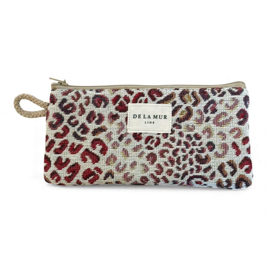 Funda de gafas con cremallera en la parte superior y pequeña asa de cordón de color beige en el lateral. Con tejido grueso de jacquard con estampado en tonos teja. Cada articulo puede tener una variación en el estampado, dependiendo de donde se haya efectuado el corte de la pieza. Forrado de tejido grueso de color gris en la parte interior. Para su correcto mantenimiento se aconseja lavarlo en frío a mano y no utilizar secadora.