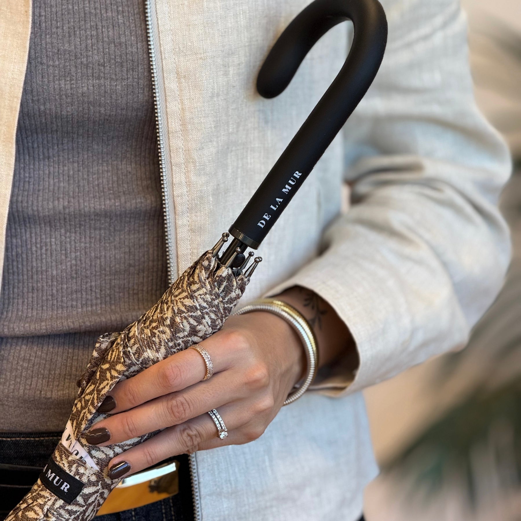 El paraguas que no te vas a quitar de encima. Con el mismo estampado que otros productos para ir siempre súper combinadas y protegidas de la lluvia.