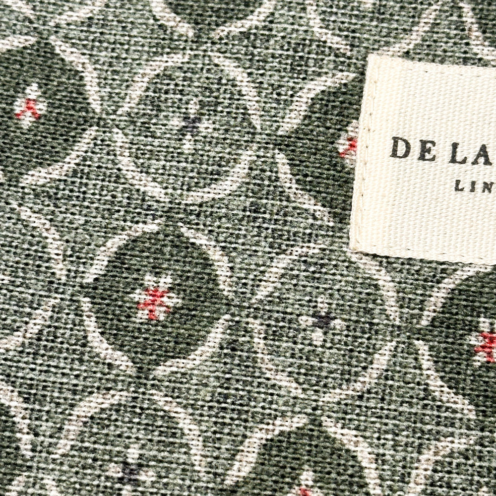 Mini neceser con cremallera en la parte superior y pequeña asa de cordón de color beige en el lateral. Con tejido fino de half-panama con estampado geométrico en tonos verdes. Cada articulo puede tener una variación en el estampado, dependiendo de donde se haya efectuado el corte de la pieza. Forrado de tejido grueso de color gris en la parte interior. Para su correcto mantenimiento se aconseja lavarlo en frío a mano y no utilizar secadora.