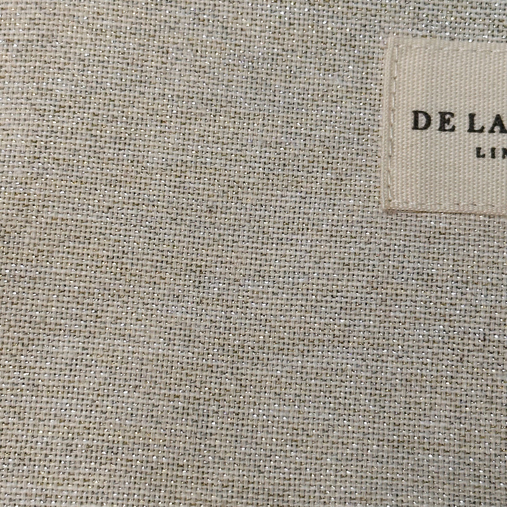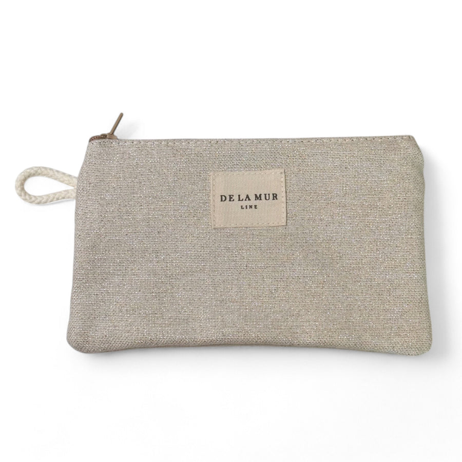 Mini neceser con cremallera en la parte superior y pequeña asa de cordón de color crudo en el lateral. Con tejido fino de half-panama de color beige con lurex brillante dorado y plateado. Cada articulo puede tener una variación en el estampado, dependiendo de donde se haya efectuado el corte de la pieza. Forrado de tejido grueso de color gris en la parte interior. Para su correcto mantenimiento se aconseja lavarlo en frío a mano y no utilizar secadora.