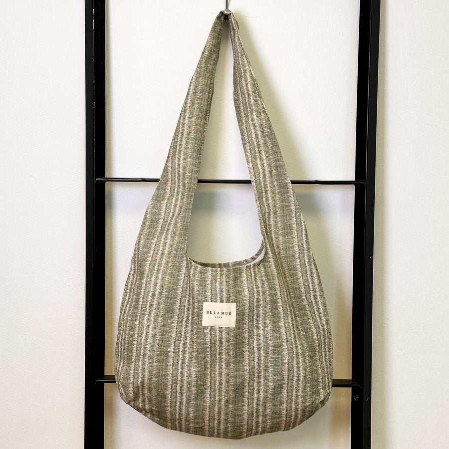 Bolsa ovalada con asas para llevar al hombro. Con tejido estampado tie dye en tonos verdes. Para su correcto mantenimiento se aconseja lavarlo en frío a mano y no utilizar secadora.