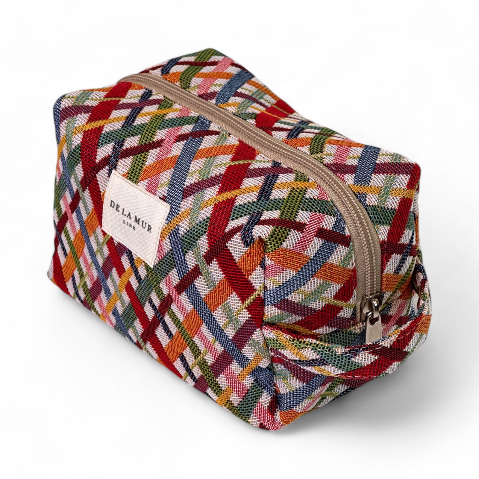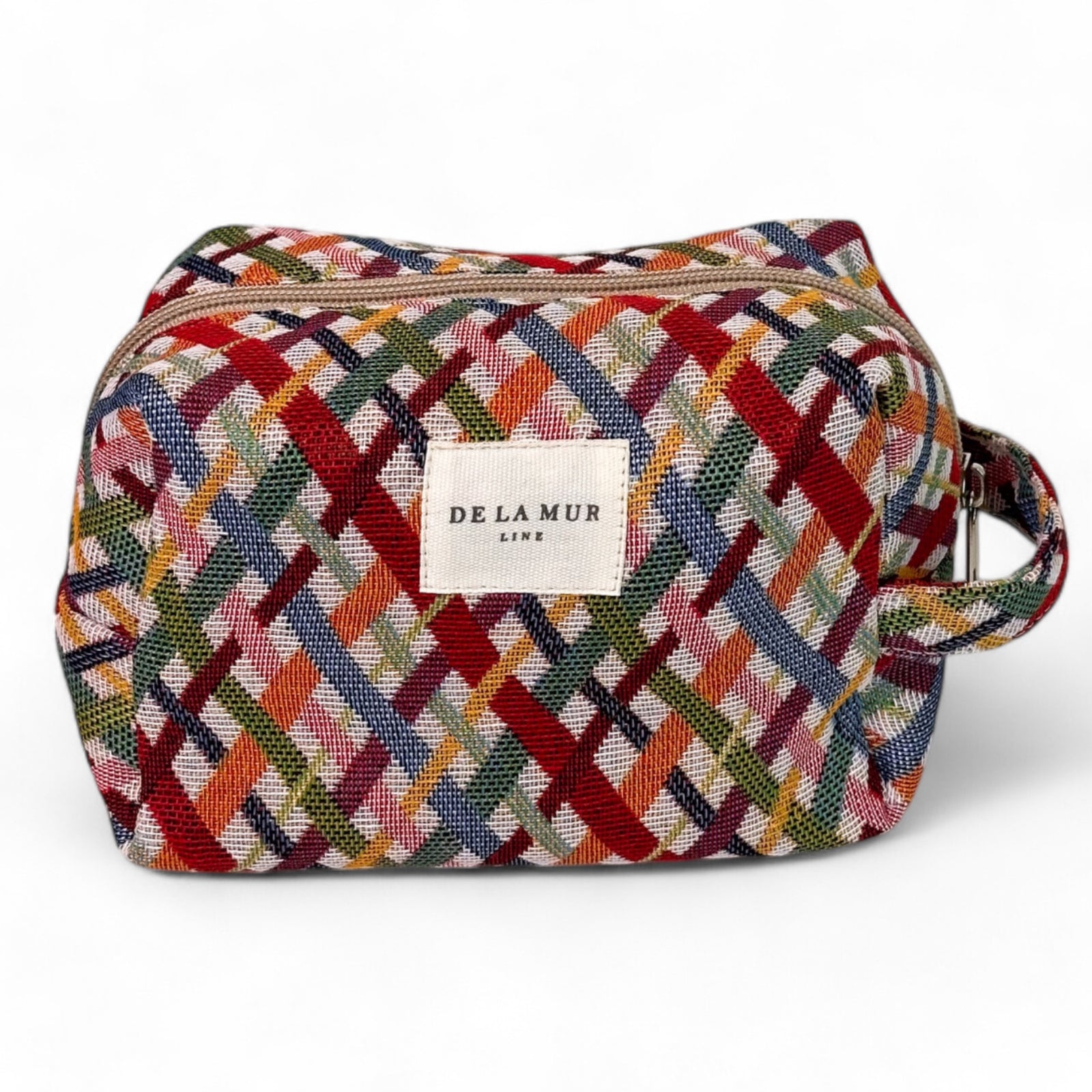 Neceser mediano con cremallera en la parte superior y con asa lateral. Con tejido grueso de jacquard con estampado multicolor. Para su correcto mantenimiento se aconseja lavarlo en frío y no utilizar secadora.
